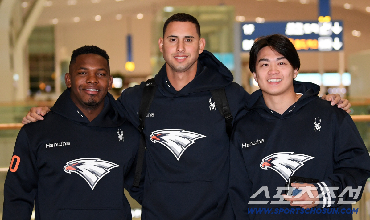 한화 이글스 선수단이 23일 인천국제공항을 통해 스프링캠프가 열리는 호주로 출국했다. 페라자, 에르난데스, 왕옌청이 출국장으로 향하고 있다. 인천공항=박재만 기자 pjm@sportschosun.com