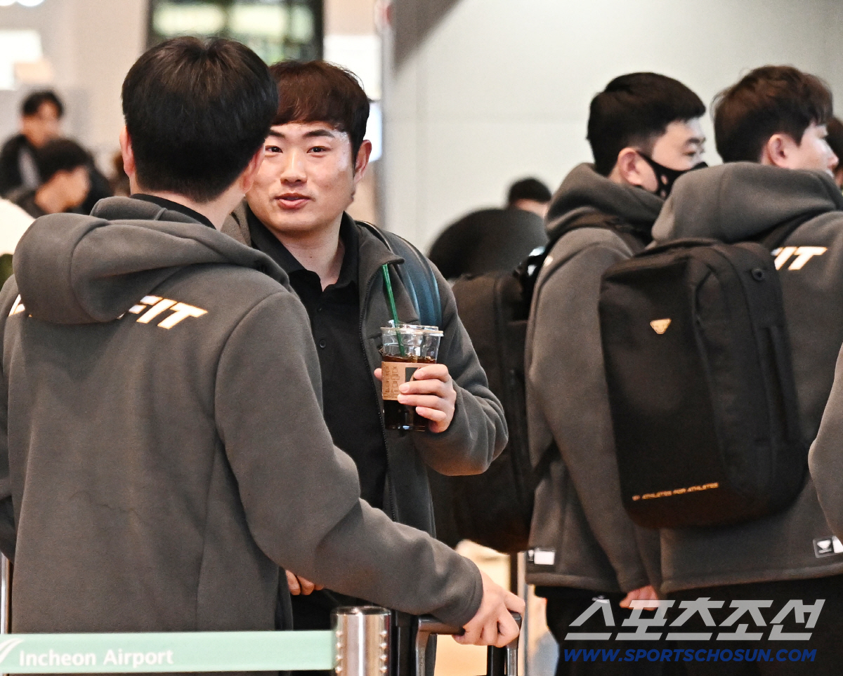 23일 SSG 랜더스 선수단이 인천공항 제2터미널을 통해 전지훈련을 위해 출국했다. 후배들과 출국 준비를 하고 있는 SSG 이지영. 인천공항=송정헌 기자songs@sportschosun.com