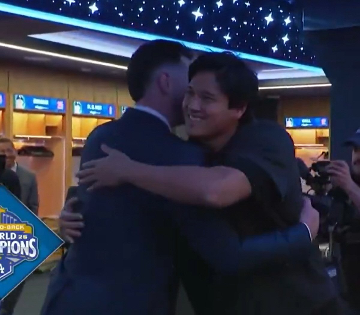 사건(?)은 최근 다저스 전담 중계 방송사인 'LA 스포츠넷'의 영상에서 시작됐다. 다저스가 4년 2억4000만달러에 새롭게 영입한 '대어 FA' 카일 터커가 수트를 입고 다저스타디움을 첫 방문했다. 터커는 다저스 선수들이 이용하는 클럽하우스도 찾았는데, 거기에 편안한 운동복 차림의 오타니가 있었다. 오타니는 터커와 반갑게 포옹하며 인사를 나눴다.