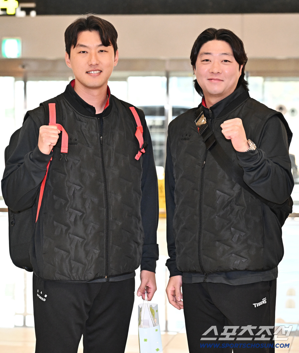 23일 오후 KIA 타이거즈 선수단이 김포공항을 통해 전지훈련이 열리는 일본으로 출국했다. 함께 포즈를 취하고 있는 KIA 홍건희, 김범수. 김포공항=송정헌 기자songs@sportschosun.com