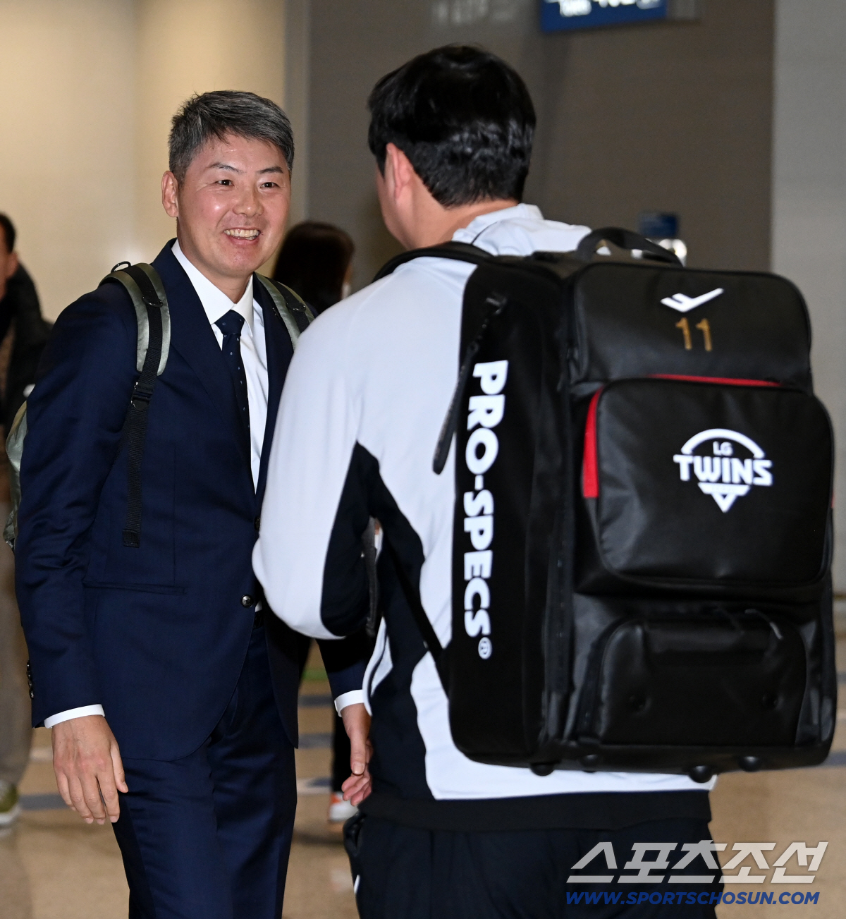 두산 베어스 선수단이 23일 인천공항을 통해 전지훈련지인 호주 시드니로 출국했다. 김원형 감독이 LG 함덕주와 인사를 나누고 있다. 인천공항=허상욱 기자wook@sportschosun.com