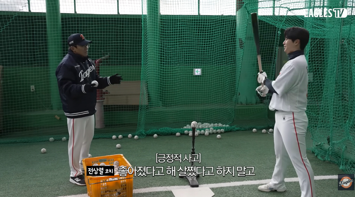 최근 구단 공식유튜브 이글스TV에는 서산에서 훈련을 이끄는 전 코치의 모습이 잡혔다.