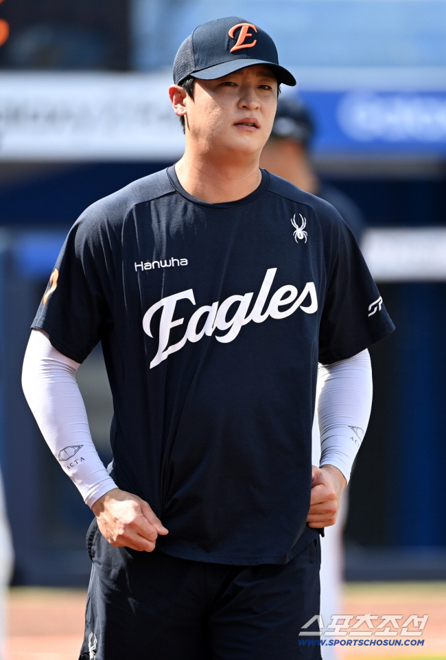 6일 대구 삼성라이온즈파크에서 열린 한화와 삼성의 경기, 한화 이진영이 워밍업을 하고 있다. 대구=허상욱 기자wook@sportschosun.com/2025.09.06/