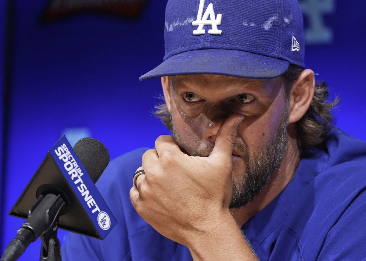 클레이튼 커쇼가 지난해 9월 19일(한국시각) 다저스타디움에서 은퇴 기자회견을 하고 있다. AP연합뉴스