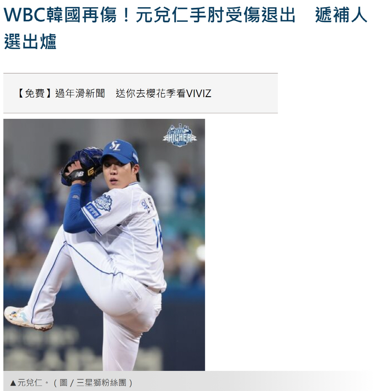 대만 ET투데이는 15일 "WBC 한국 대표팀에 또 부상 악재가 터졌다. 원태인이 팔꿈치 부상으로 낙마했다"고 긴급 보도했다.