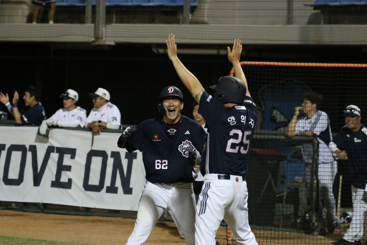 그런데 이게 웬일. 천하의 양의지가 초구에 번트를 댔다. 조금 강하게 맞았지만, 양의지가 번트를 댈 거라 전혀 예상하지 못한 상대 내야가 대처를 하지 못했고, 안전하게 주자들이 2, 3루에서 살았다. 그리고 안재석의 내야 강한 땅볼이 나오며 추가점을 만들었다.