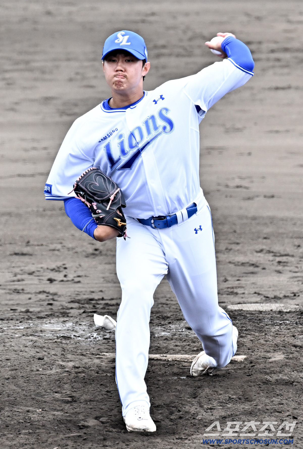 20일 일본 오키나와 온나손 아카마 구장에서 열린 대한민국 야구 대표팀과 삼성 라이온즈의 평가전, 배찬승이 역투하고 있다. 오키나와(일본)=박재만 기자 pjm@sportschosun.com./2026.02.20/