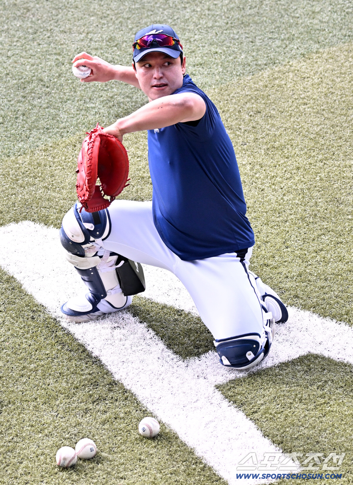 24일 일본 오키나와 가데나 구장에서 열린 야구 대표팀과 KIA 타이거즈의 평가전. 박동원이 수비 훈련을 하고 있다. 오키나와(일본)=박재만 기자 pjm@sportschosun.com