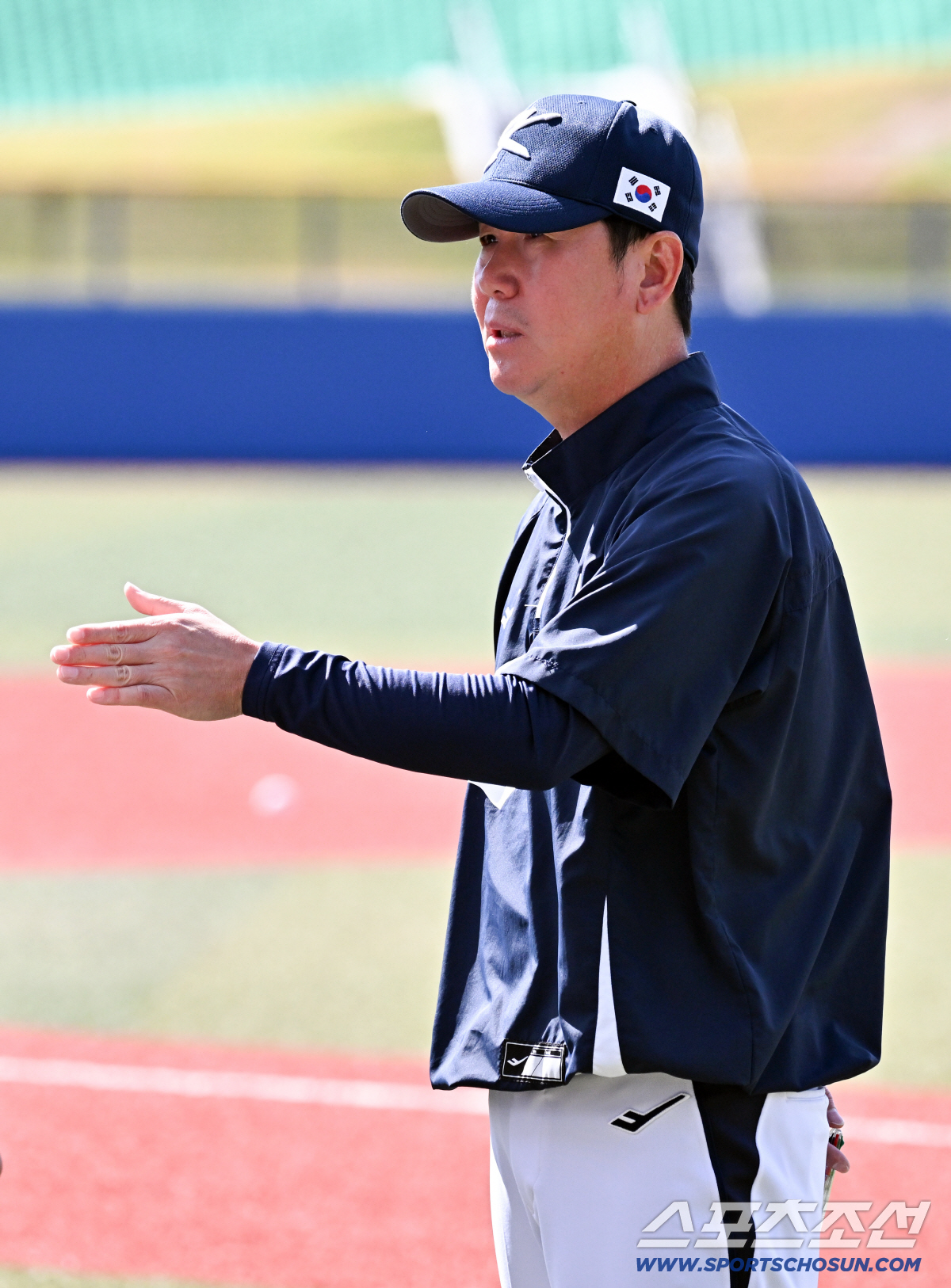 24일 일본 오키나와 가데나 구장에서 열린 야구 대표팀과 KIA 타이거즈의 평가전. 류지현 감독이 훈련을 지켜보고 있다. 오키나와(일본)=박재만 기자 pjm@sportschosun.com