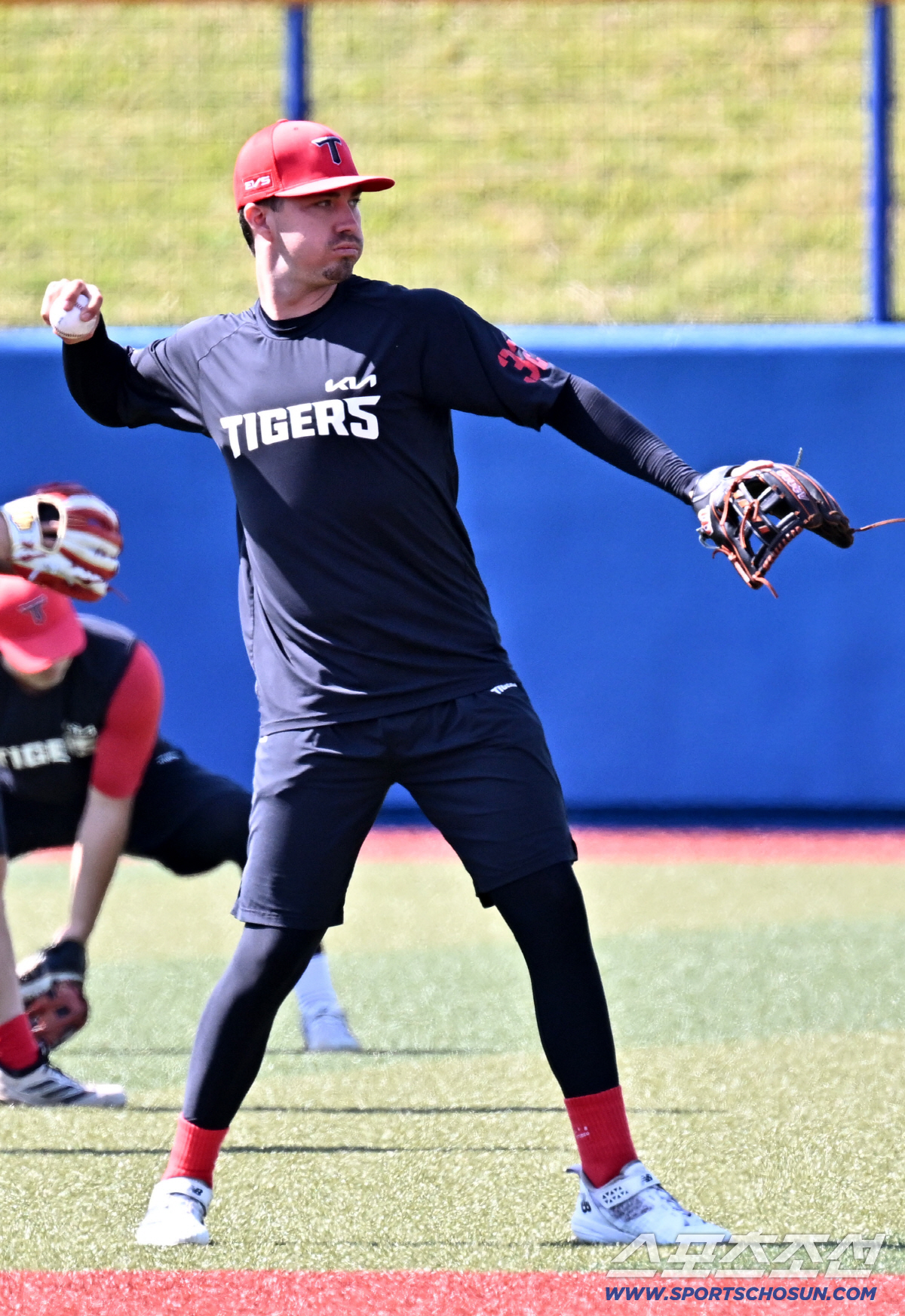 24일 일본 오키나와 가데나 구장에서 열린 야구 대표팀과 KIA 타이거즈의 평가전. 데일이 캐치볼을 하고 있다. 오키나와(일본)=박재만 기자 pjm@sportschosun.com/2026.02.24/