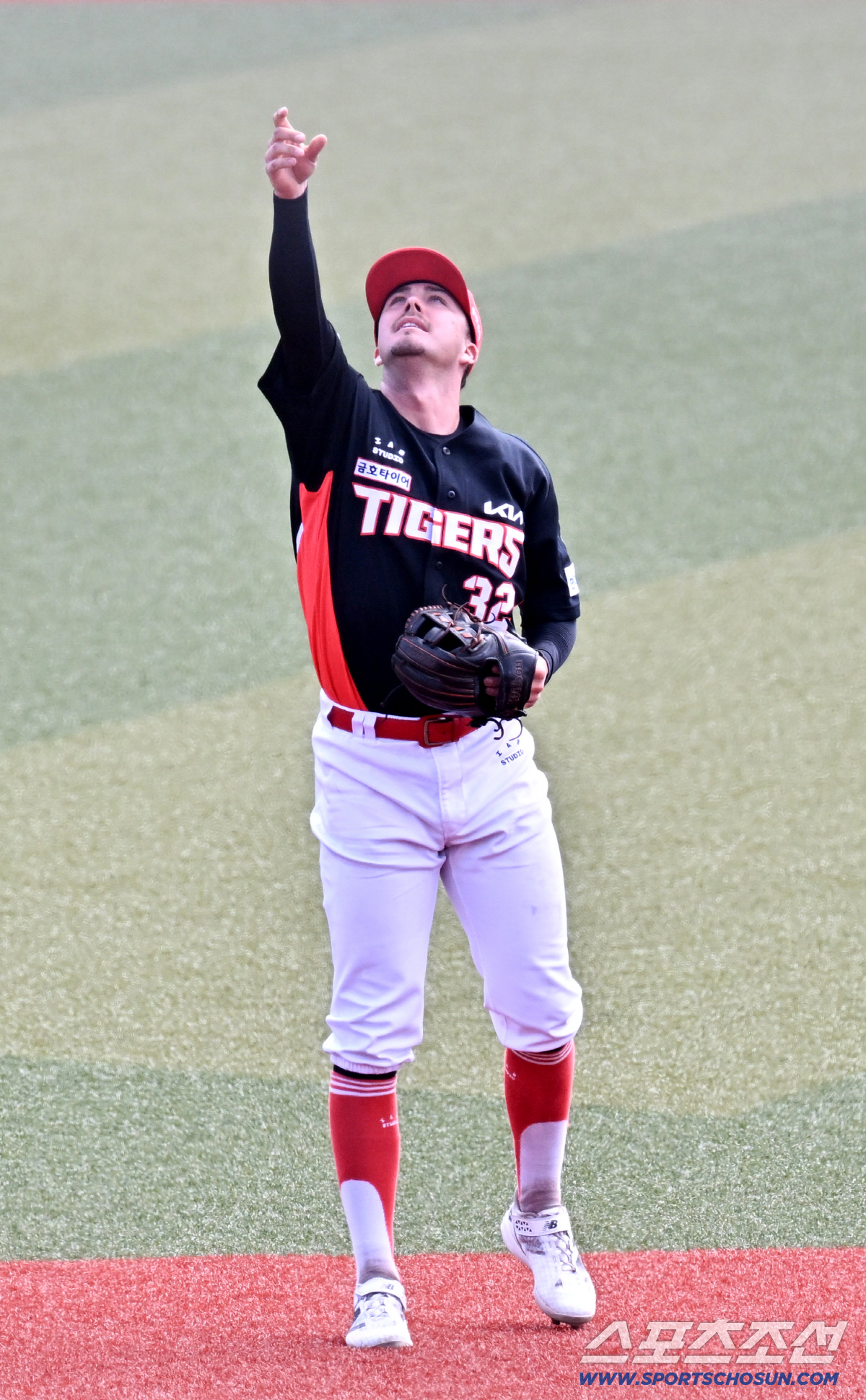 24일 일본 오키나와 가데나 구장에서 열린 야구 대표팀과 KIA 타이거즈의 평가전. 유격수 데일이 바람을 체크하고 있다. 오키나와(일본)=박재만 기자 pjm@sportschosun.com