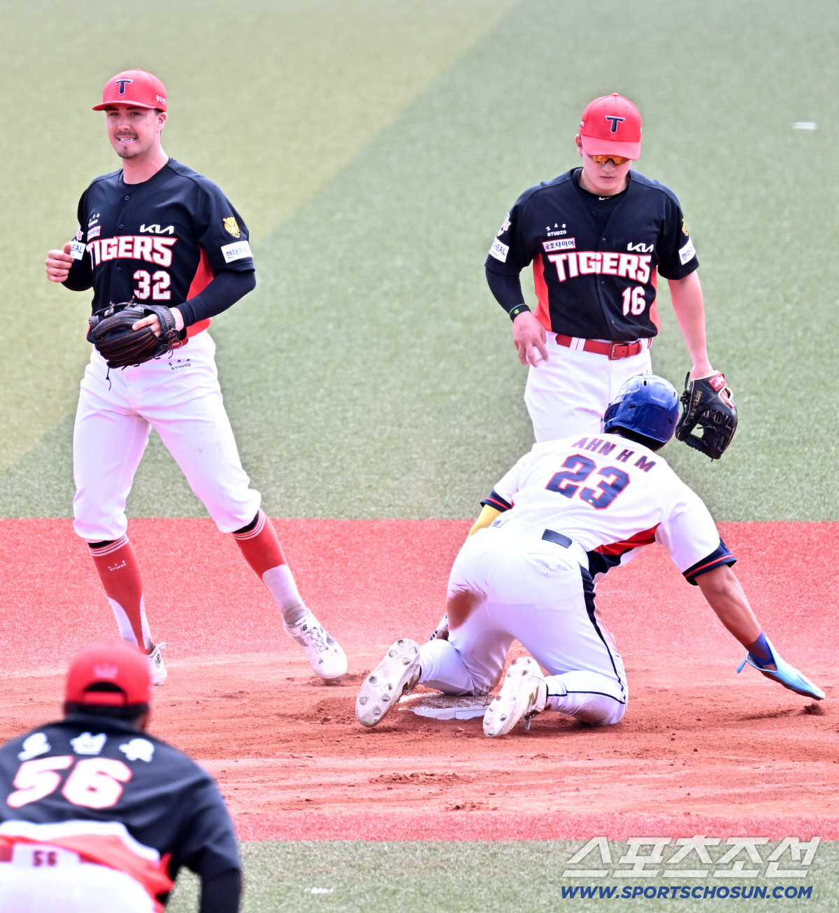 24일 일본 오키나와 가데나 구장에서 열린 야구 대표팀과 KIA 타이거즈의 평가전. KIA 데일, 윤도현이 호흡을 맞추고 있다. 오키나와(일본)=박재만 기자 pjm@sportschosun.com
