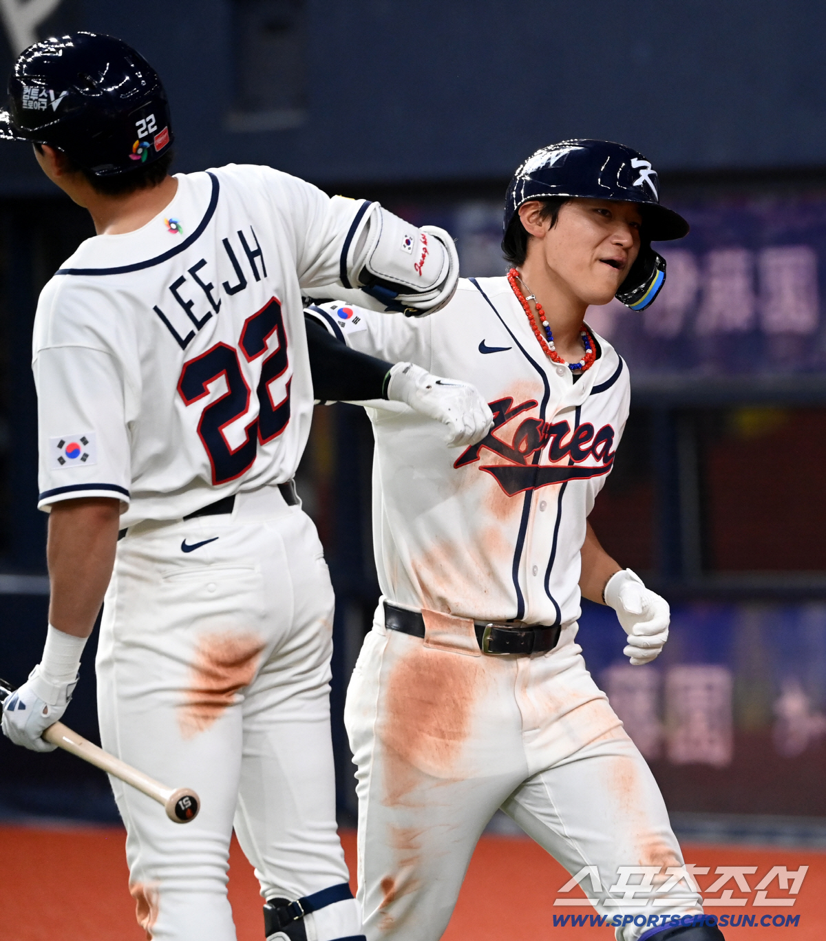 한국은 1회초 선취점을 뽑았다. 선두타자 김도영이 3루수 앞 내야안타로 출루한 가운데 1사 후 이정후가 중전 안타로 흐름을 연결했다. 2사 1, 2루에서는 문보경이 중전 적시타를 때려 1-0이 됐다. 계속된 2사 1, 3루 기회에서는 안현민이 좌익선상 적시 2루타를 때려 2-0으로 앞서 나갔다.