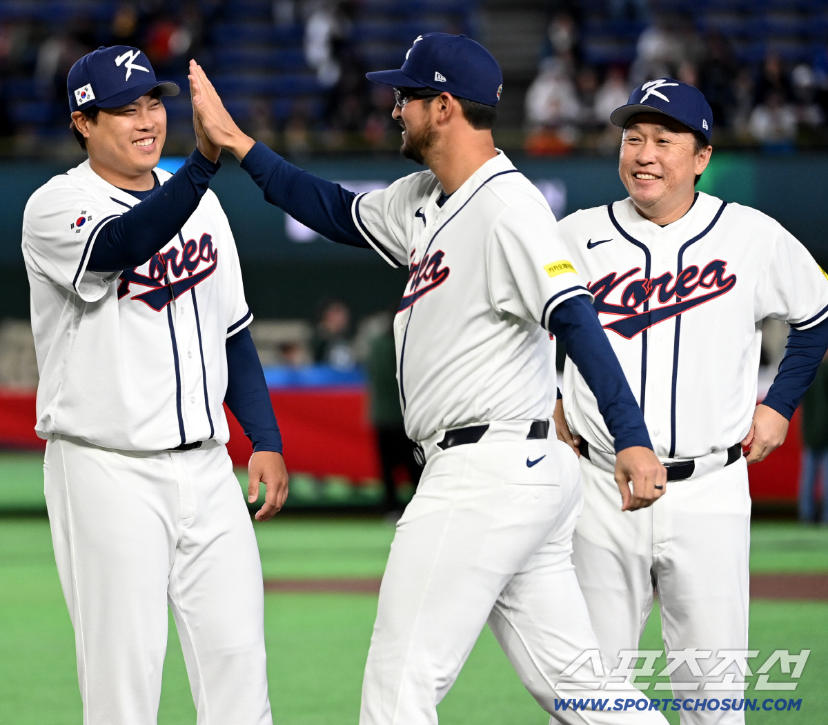 5일 일본 도쿄돔에서 열린 WBC(월드베이스볼클래식) 한국과 체코의 경기. 선수소개때 류현진이 데인 더닝을 맞이하고 있다. 도쿄(일본)=허상욱 기자wook@sportschosun.com