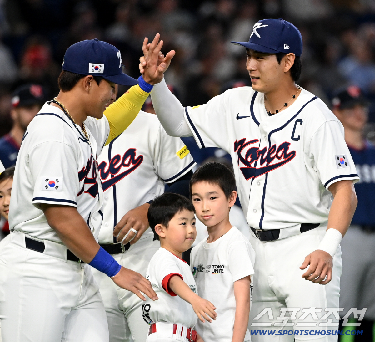 5일 일본 도쿄돔에서 열린 WBC(월드베이스볼클래식) 한국과 체코의 경기. 선수 소개때 안현민,이정후가 하이파이브를 하고 있다. 도쿄(일본)=허상욱 기자wook@sportschosun.com