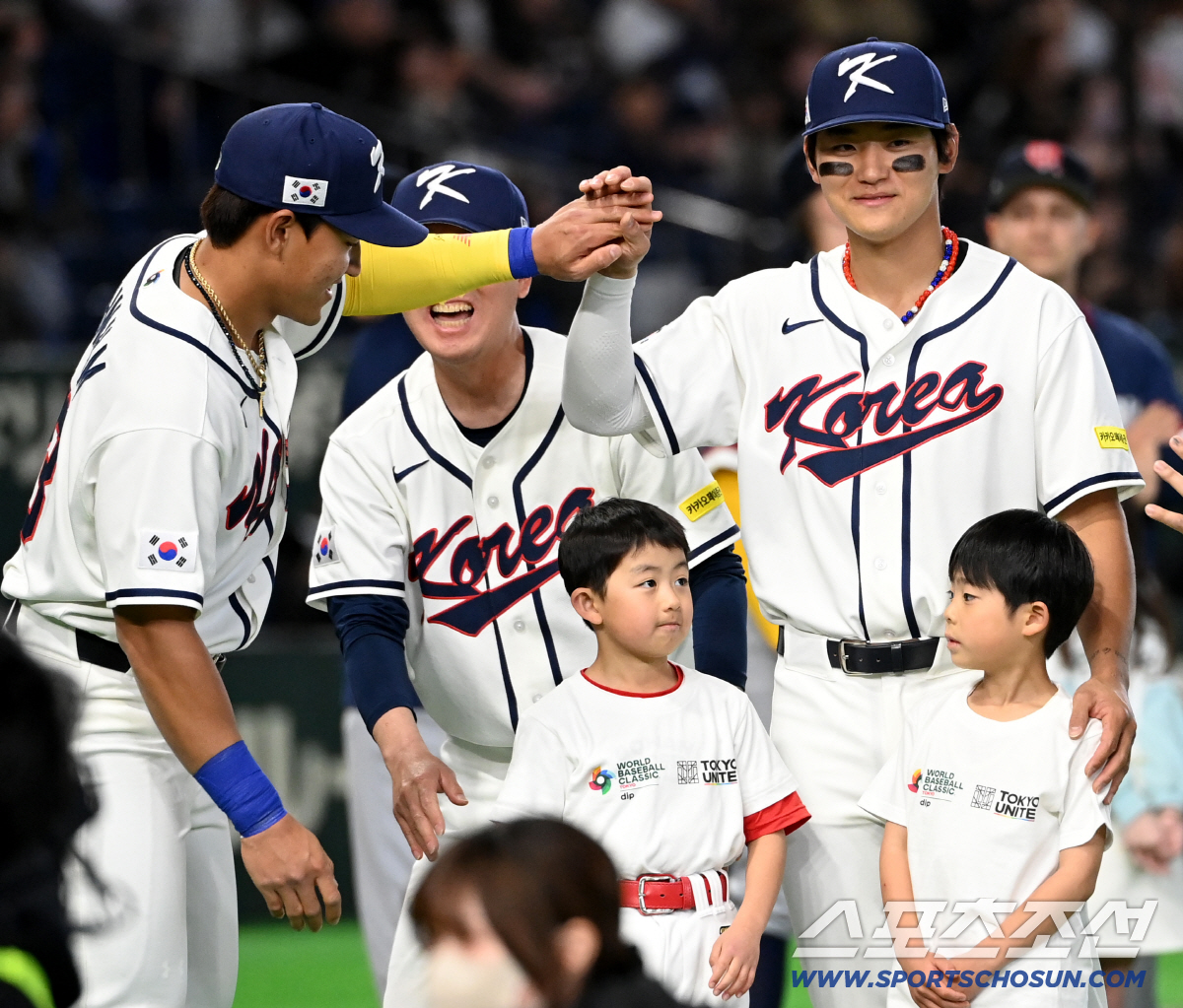 5일 일본 도쿄돔에서 열린 WBC(월드베이스볼클래식) 한국과 체코의 경기. 선수 소개때 안현민과 김도영이 하이파이브를 하고 있다. 도쿄(일본)=허상욱 기자wook@sportschosun.com