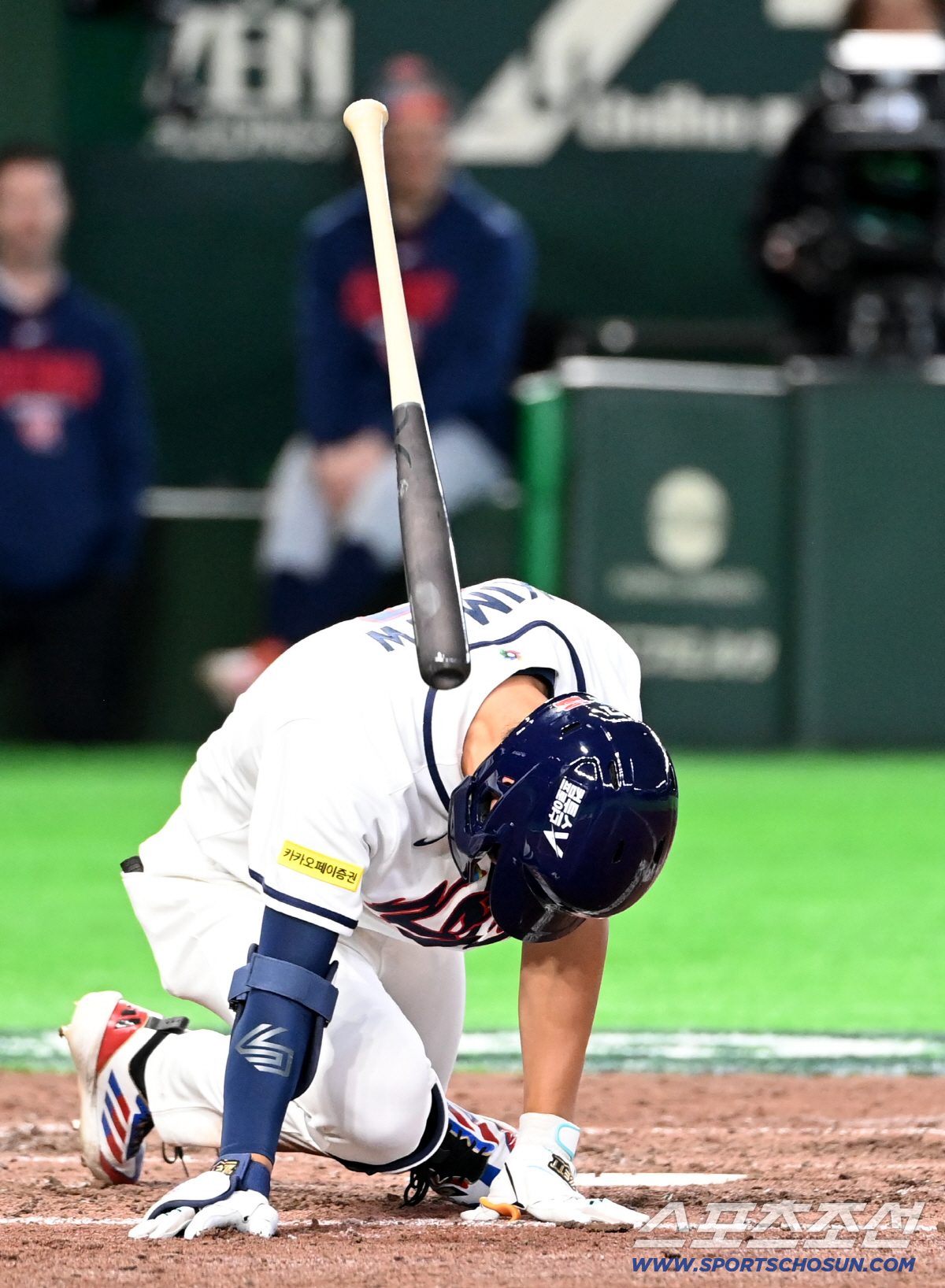 5일 일본 도쿄돔에서 열린 WBC(월드베이스볼클래식) 한국과 체코의 경기. 5회말 2사 2루 김주원이 자신이 친 파울타구에 맞은 후 괴로워하고 있다. 도쿄(일본)=허상욱 기자wook@sportschosun.com
