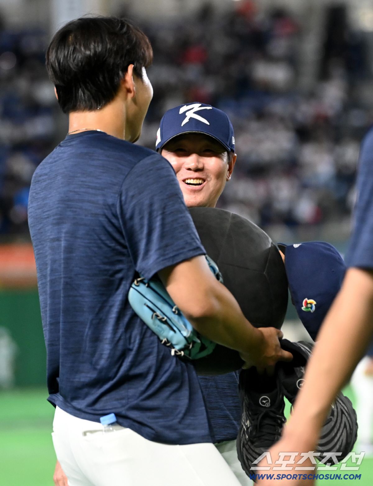 7일 일본 도쿄돔에서 열린 WBC(월드베이스볼클래식) 한국과 일본의 경기. 경기 전 류지현 감독이 소형준과 이야기를 하고 있다. 도쿄(일본)=허상욱 기자wook@sportschosun.com