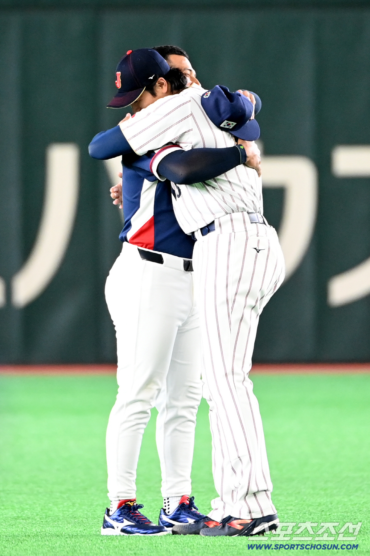 7일 일본 도쿄돔에서 열린 WBC(월드베이스볼클래식) 한국과 일본의 경기. 경기 전 오타니와 자마이 존스가 인사를 나누고 있다. 도쿄(일본)=허상욱 기자wook@sportschosun.com