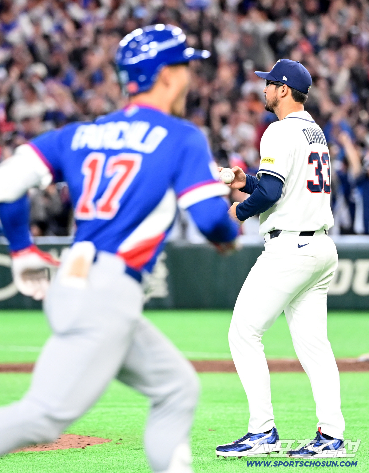 | 8일 일본 도쿄돔에서 열린 WBC(월드베이스볼클래식) 한국과 대만의 경기, 8회초 2사 2루 대만 페어차일드가 재역전 2점홈런을 치고 기뻐하고 있다. 도쿄(일본)=허상욱 기자wook@sportschosun.com/2026.03.08/ |