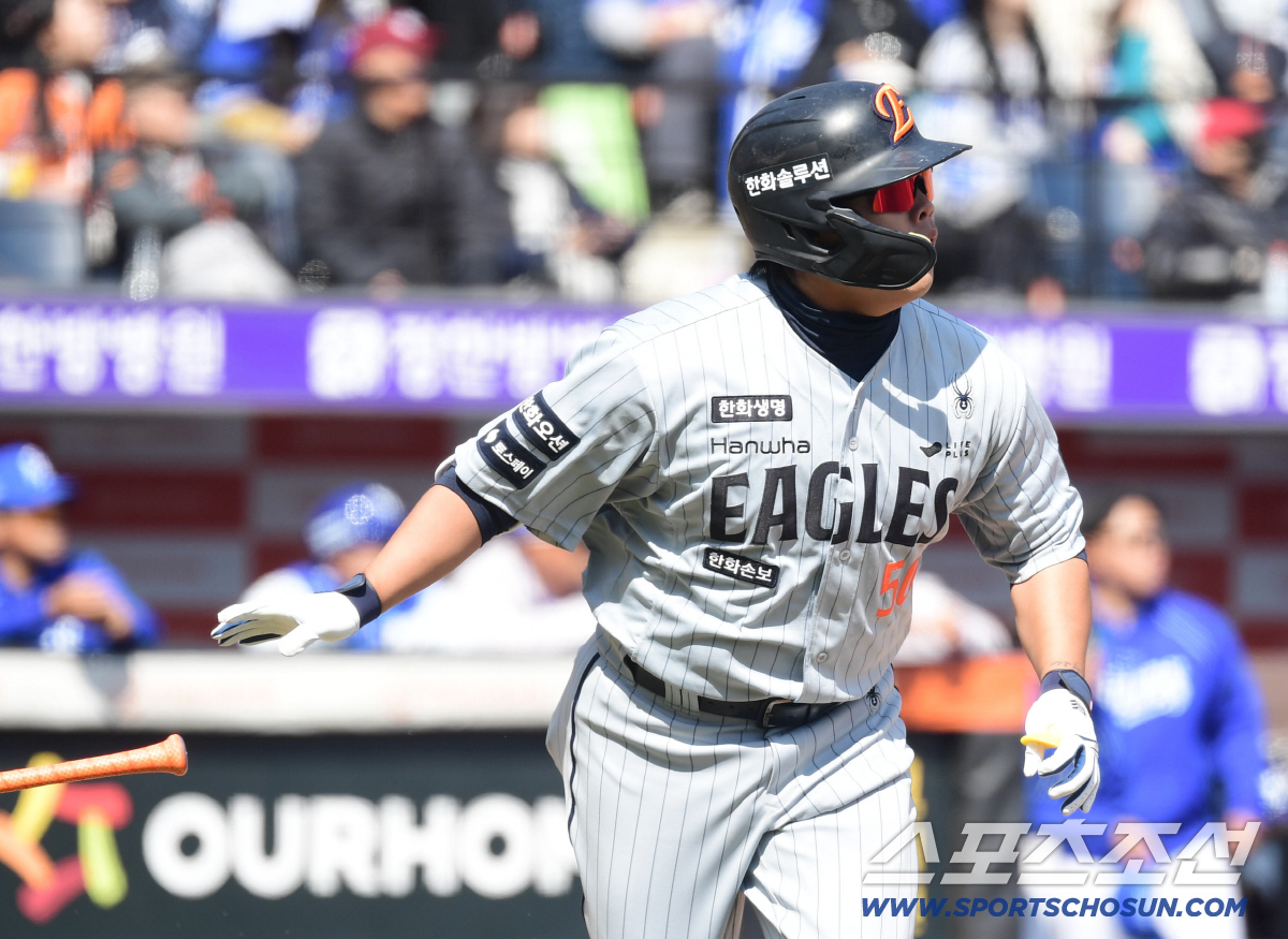 [대전=스포츠조선 정현석 기자]100억 FA로 한화 이글스 유니폼을 입은 강백호(27)가 마침내 홈 팬들 앞에서 화끈한 홈런포로 신고식을 했다. 이적 후 첫 홈런.