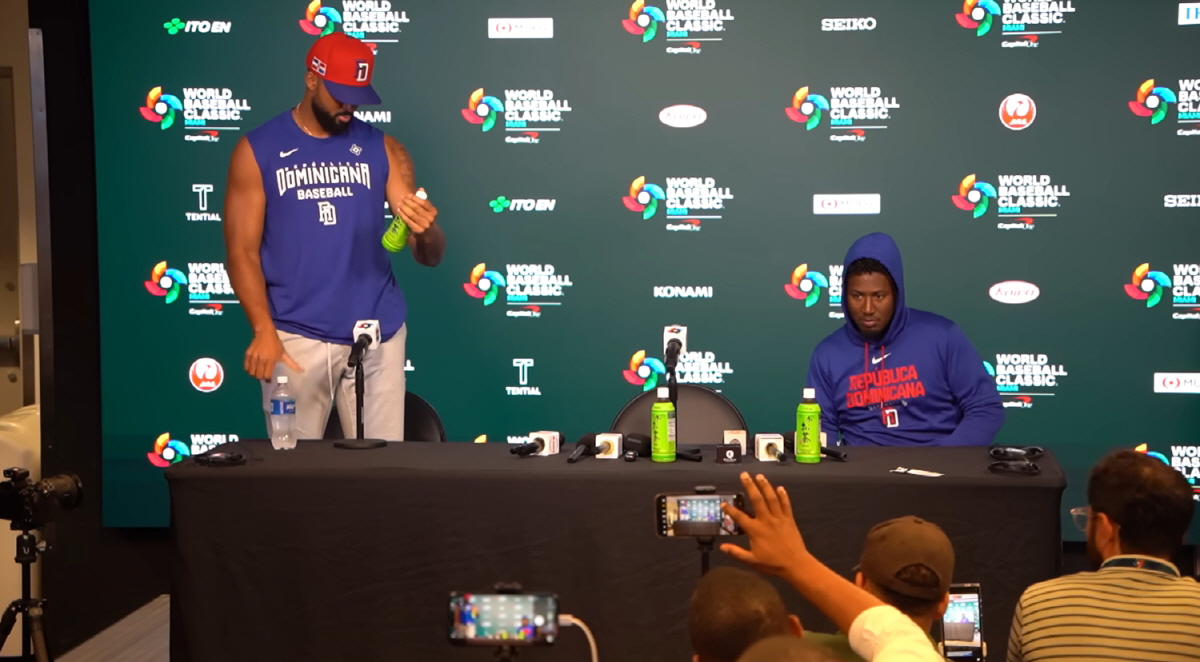 논란은 또 있었다. 지난 6일 기자회견에서는 도미니카공화국의 또다른 선수이자 메이저리그 스타인 후안 소토가 테이블 위에 놓여있던 해당 음료 3병을 숨기듯 발 밑으로 옮겼다는 후문이다. 함께 자리했던 블라디미르 게레로 주니어 역시 해당 음료를 치워버렸다.