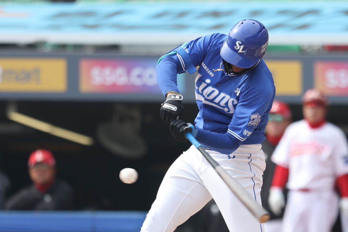 5-0으로 앞선 6회초 선두 타자로 나선 디아즈는 SSG랜더스 두번째 투수 문승원의 2구째 116㎞ 커브를 밀어 왼쪽 담장을 살짝 넘겼다. 비거리 100m의 행운의 홈런. 시범경기 마수걸이 홈런포다.