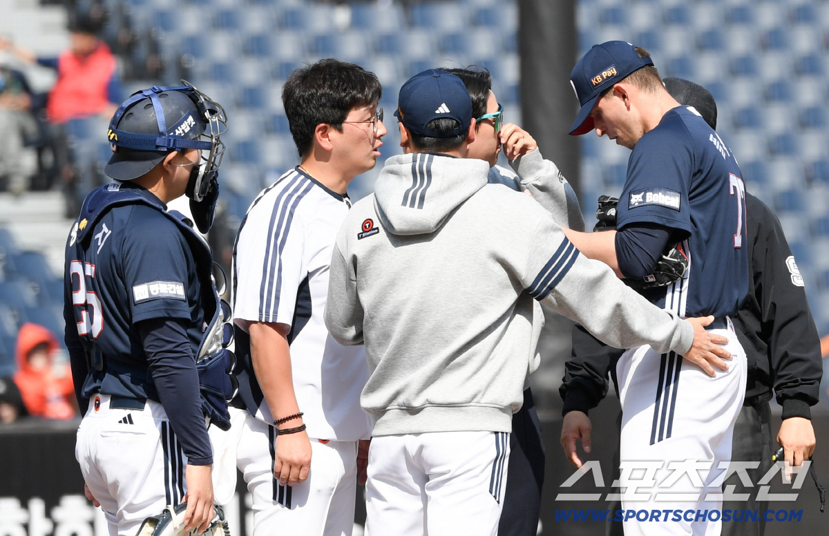 문제의 장면은 0-0으로 맞선 4회말에 나왔다. 강백호와 채은성이 연속 안타를 쳐 무사 1, 2루가 됐다. 최인호는 헛스윙 삼진. 1사 1, 2루 하주석이 2루수 땅볼로 출루하면서 2사 1, 3루가 됐고, 이도윤이 투수 앞에서 크게 튀어오르는 내야안타를 쳤다. 0-1.