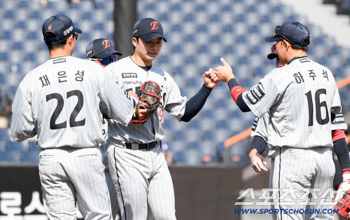 [대전=스포츠조선 박재만 기자] 왕옌청 호투에 투수 코치 눈에서는 꿀이 뚝뚝 떨어졌다. 한화 형님들은 호투한 동생 머리를 연신 쓰다듬은 뒤 엄지를 치켜세웠다.