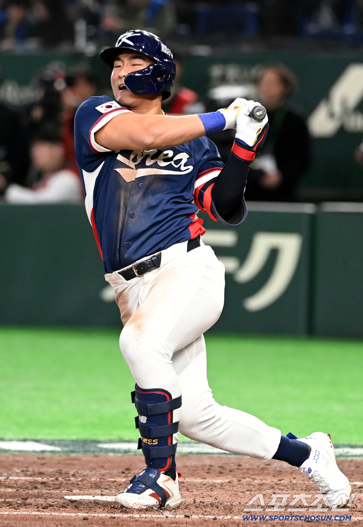 7일 일본 도쿄돔에서 열린 WBC(월드베이스볼클래식) 한국과 일본의 경기. 5회초 안현민이 파울타구를 다리에 맞고 있다. 도쿄(일본)=허상욱 기자wook@sportschosun.com/2026.03.07/