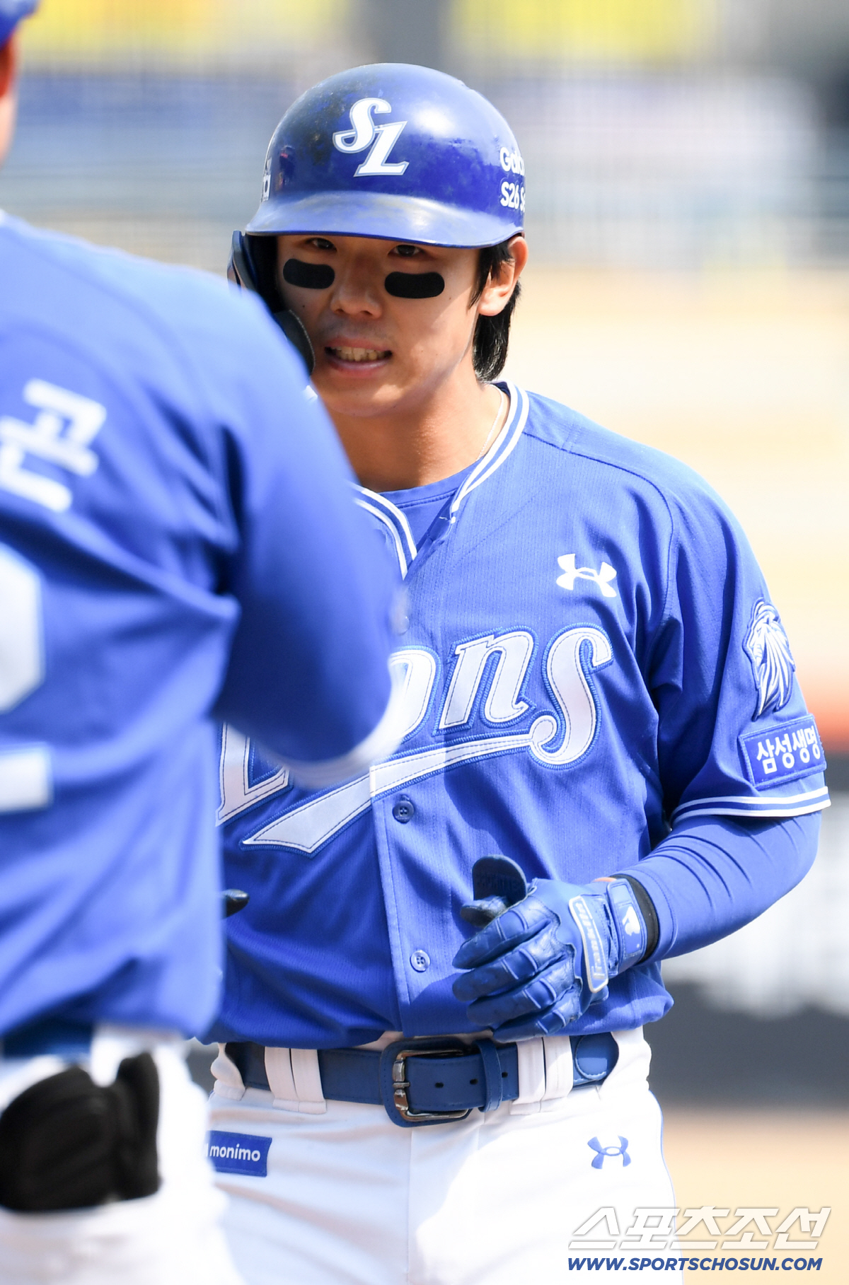24일 대구삼성라이온즈파크에서 열린 KIA와 삼성의 시범경기. 3회말 삼성 김성윤이 안타를 치고 기뻐하고 있다. 대구=허상욱 기자wook@sportschosun.com/2026.03.24/