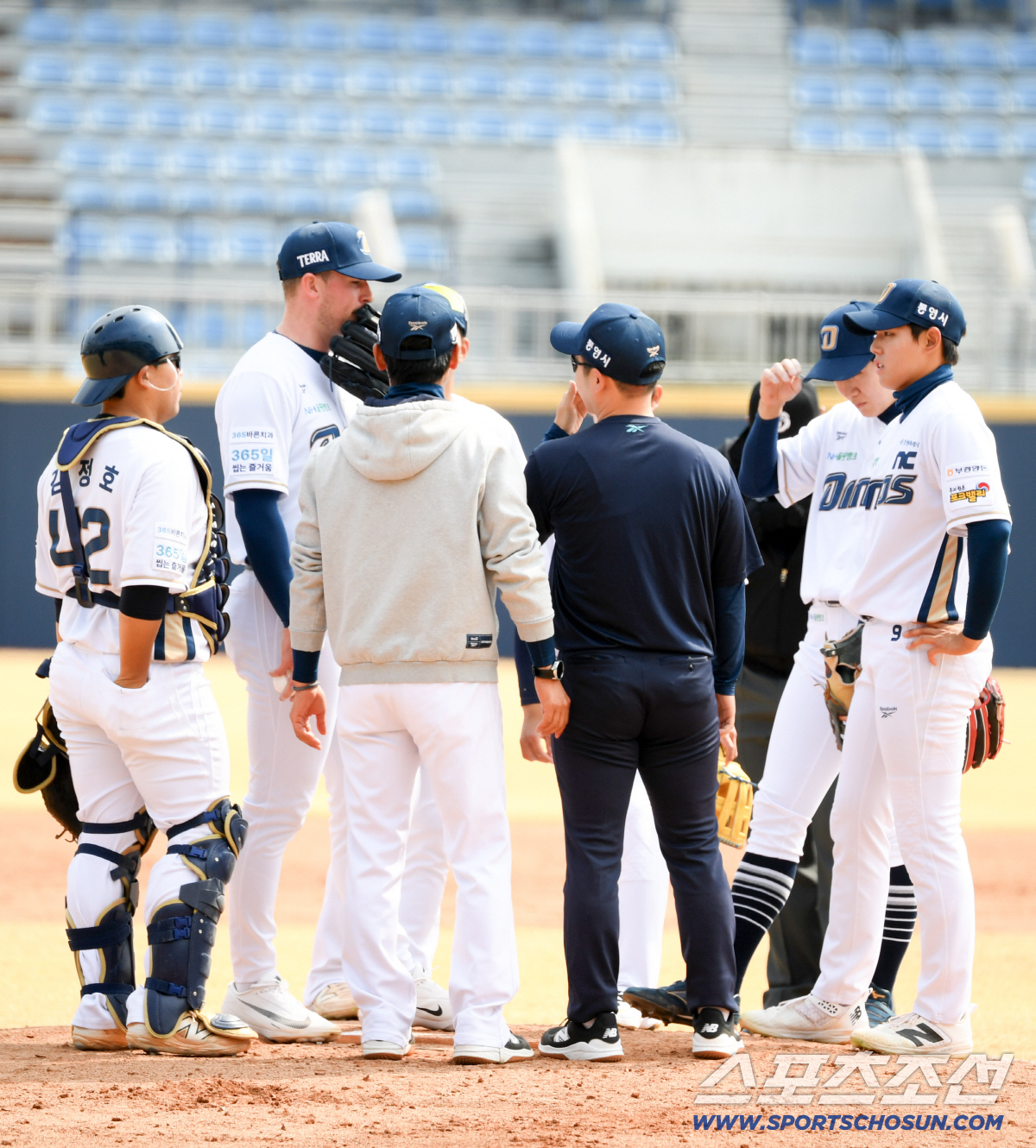 15일 마산야구장에서 열린 NC 다이노스와 키움 히어로즈의 시범경기. NC 라일리가 숨을 고르고 있다. 창원=박재만 기자 pjm@sportschosun.com/2026.03.15/