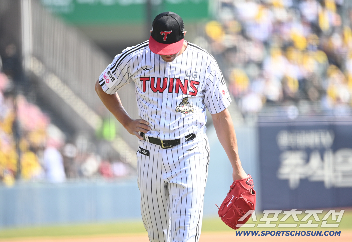 28일 잠실야구장에서 열린 KT와 LG의 개막전. 1회초 6실점 후 이닝을 마친 LG 치리노스가 더그아웃으로 향하고 있다. 잠실=허상욱 기자wook@sportschosun.com/2026.03.28/