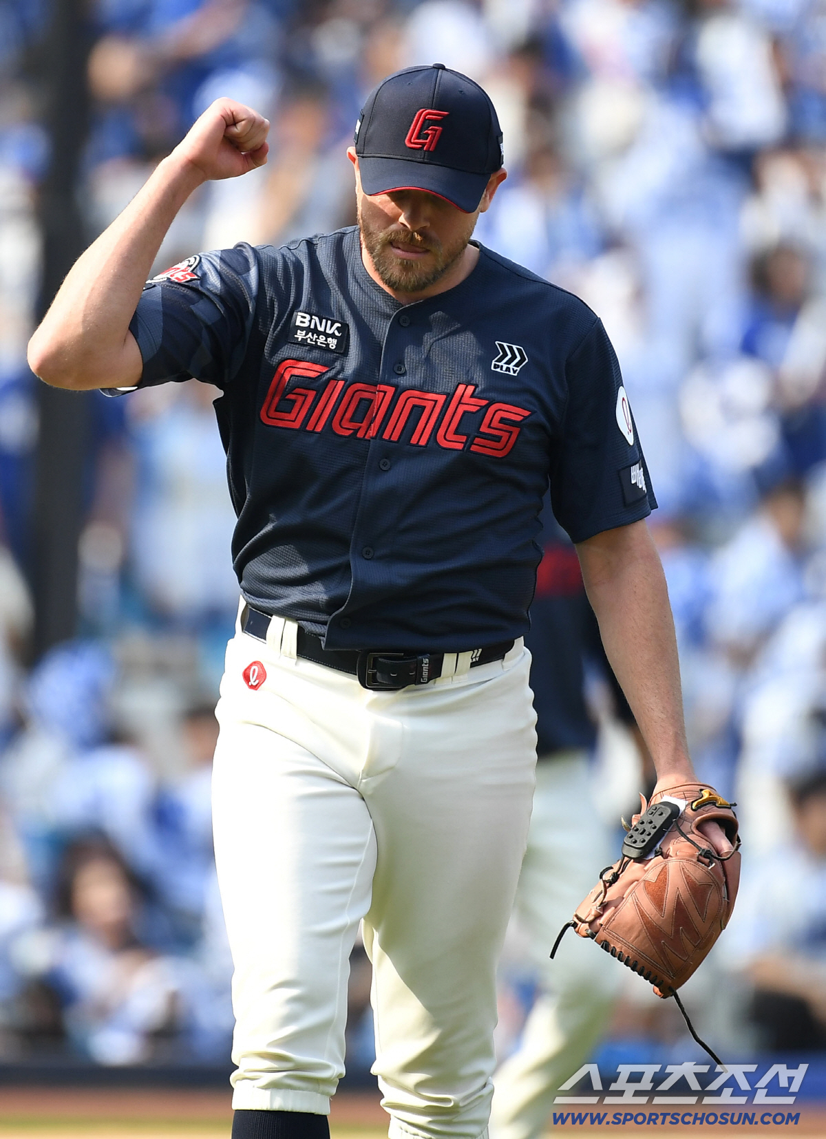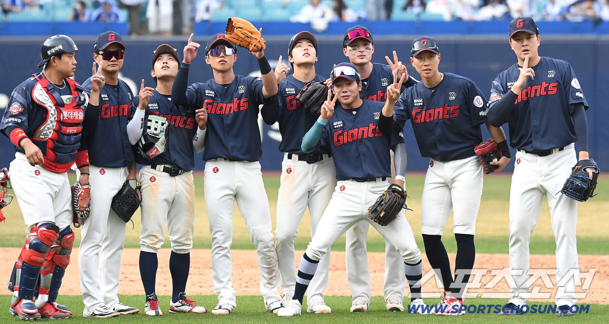 승리가 확정되자 롯데 선수들은 카메라를 향해 승리의 포즈를 취했다. 도박 파문이 약이 된 것일까? 선수들은 자신감이 넘쳤다. 시원하게 방망이가 돌아가고 있다. 4년 만에 개막전 승리에 이어 기분 좋은 2연승을 내달렸다.