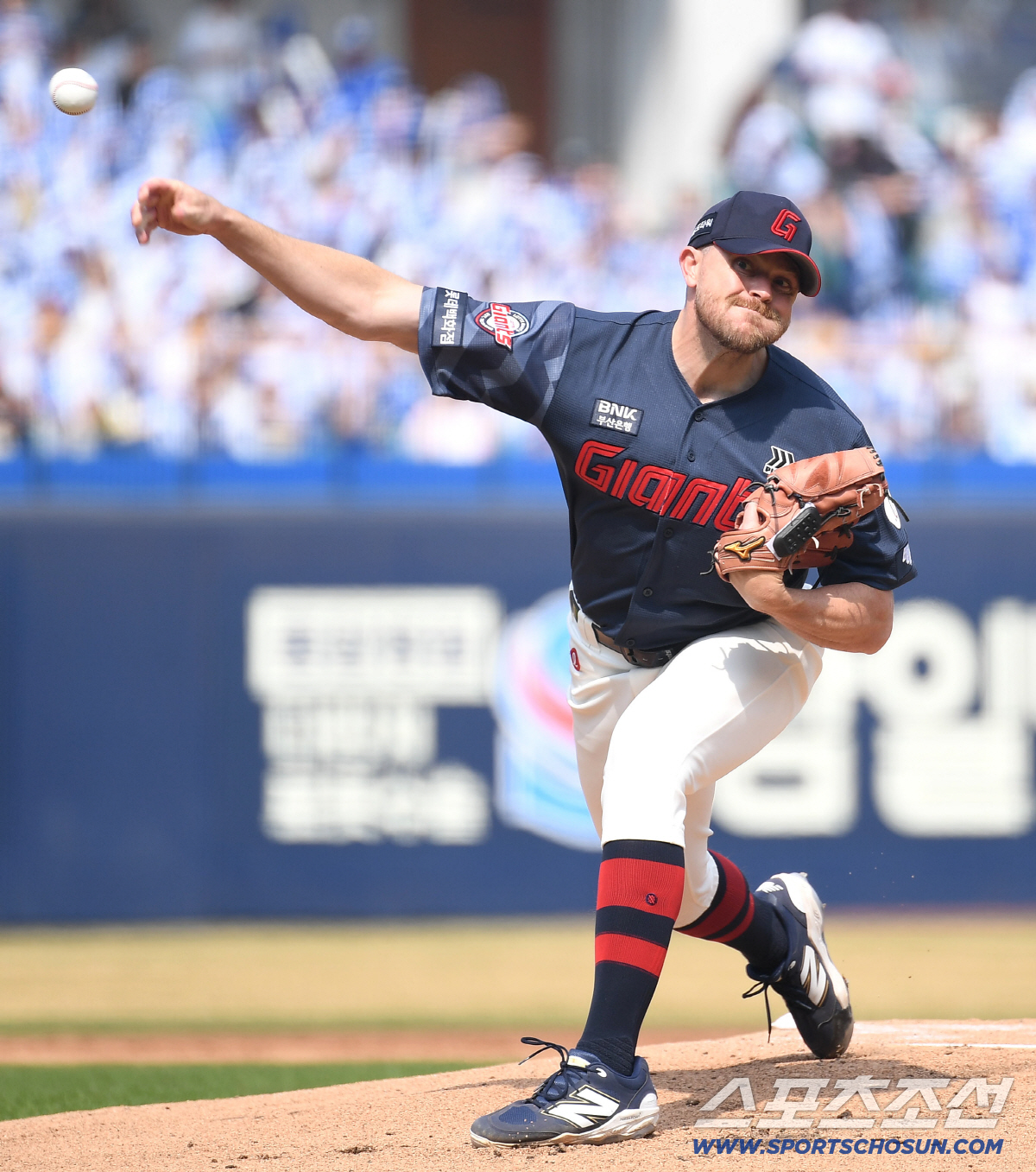 5회 노진혁의 수비 실책과 롯데 선발 비슬리가 제구력이 흔들리며 이재현에게 2사 만루에서 몸에 맞는 볼로 1실점을 허용했다.
