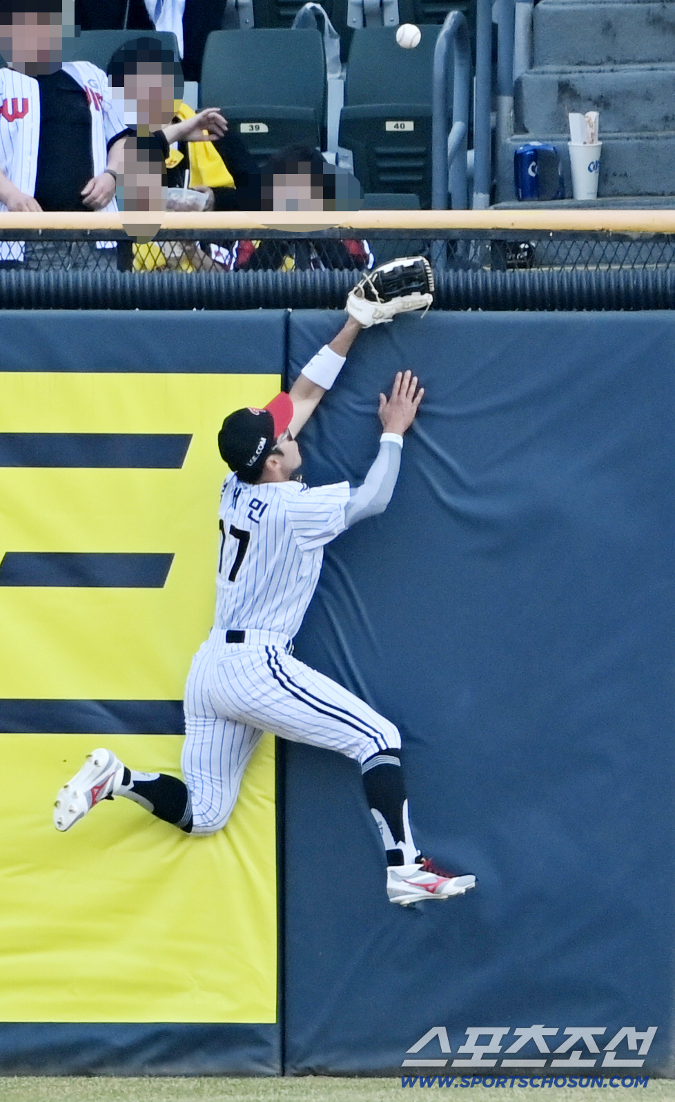 이 감독은 "신민재가 친 타구도 더그아웃에서 볼 때 처음엔 이지 플라이인줄 알았다. 그런데 힐리어드가 가는 것을 보고 '뭐야 뭐야'하며 놀랐다. 넘어가는 줄 알았다"라고 생각보다 멀리 날아가는 타구에 놀란 얘기를 했다.