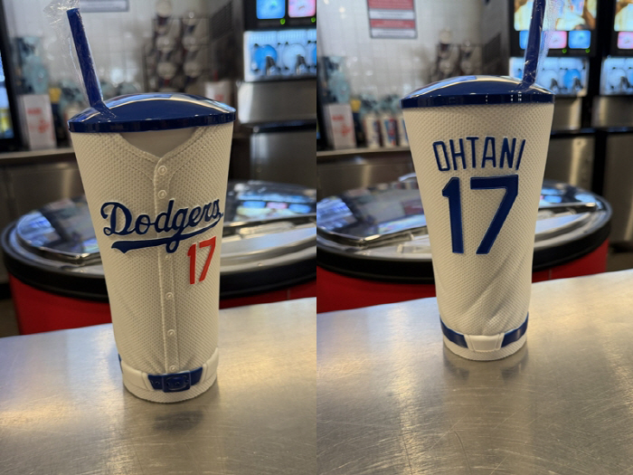 한편 이 컵은 오타니의 유니폼을 본떠 디자인한 아이템이다. 컵 전면에는 다저스 특유의 필기체 로고와 그 아래에 붉은색 등번호 '17'번이 새겨져 있고 뒷면에는 'OHTANI'라는 이름과 함께 그의 등번호가 표기돼 있다.