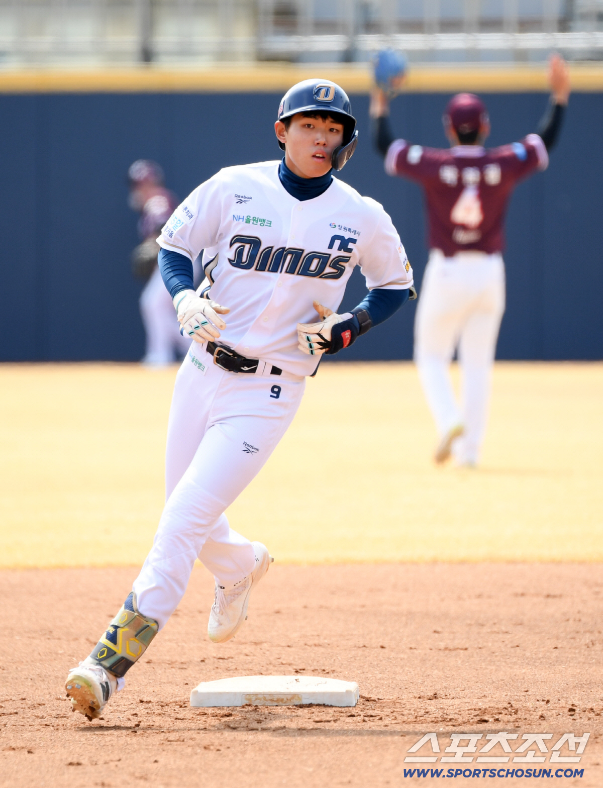 [창원=스포츠조선 한동훈 기자] NC 다이노스 고졸 신인 신재인이 데뷔 첫 안타를 홈런으로 쳐냈다.