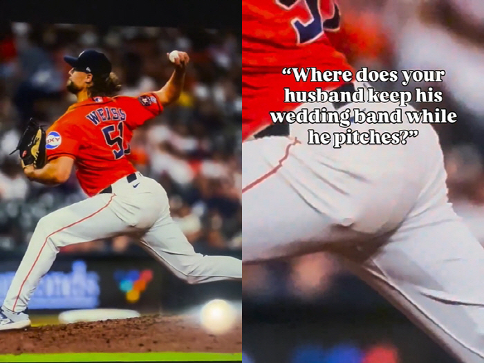영상에서 경기 중 와이스의 투구 동작 영상이 등장하고 그의 엉덩이 부분이 클로즈업된다. 와이스는 마운드에 섰을때도 결혼반지를 빼놓지 않고 바지 뒷주머니에 넣어놓고 투구를 하고 있다.