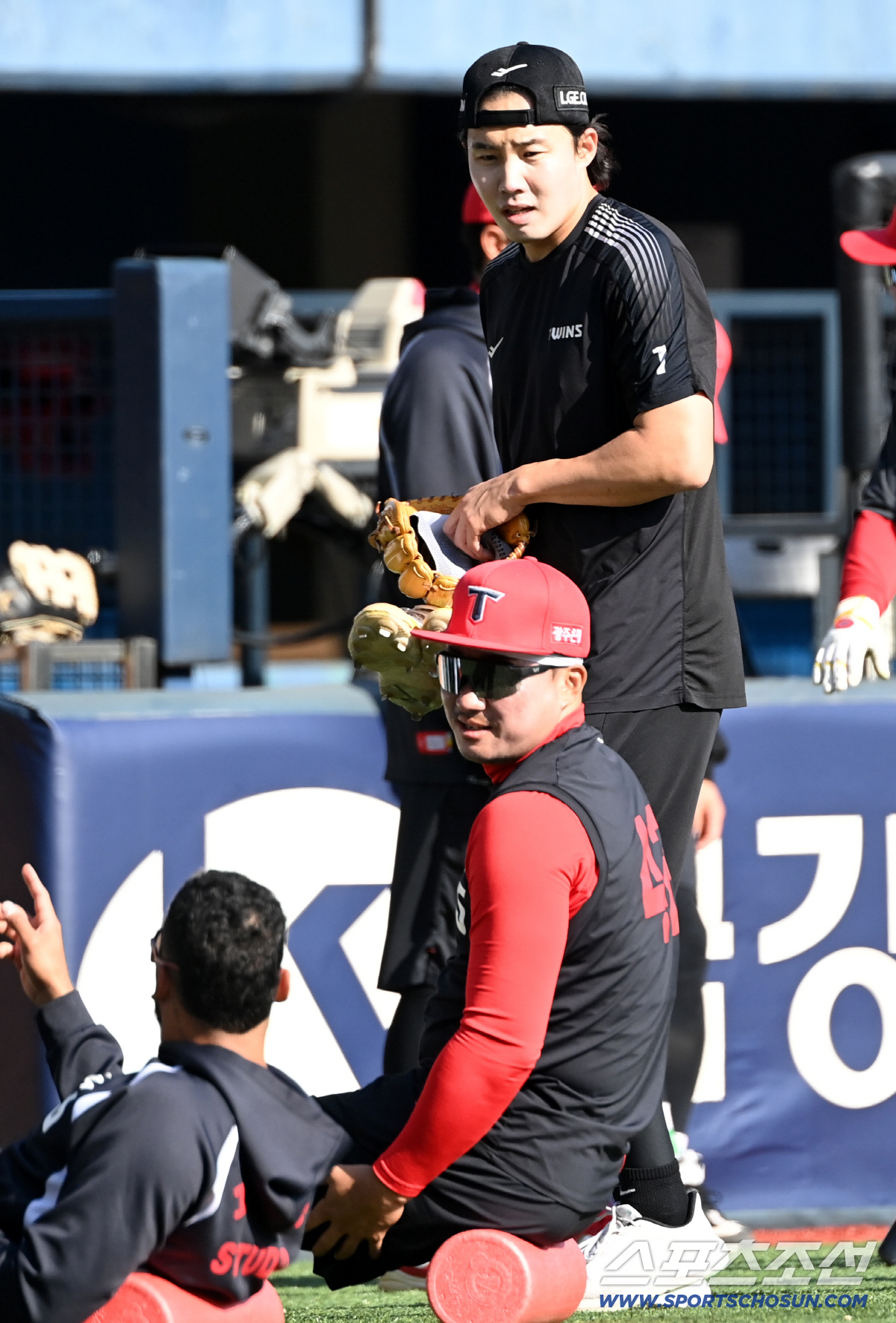 김태군과 이야기를 나누던 임찬규는 자연스레 옆에 있던 카스트로와 인사를 나누었고 특유의 친화력을 뽐내며 웃음을 이끌어냈다. 팀의 경계를 넘나드는 임찬규의 친화력에 카스트로도 환하게 웃음 짓는 모습이 포착되어 훈훈한 장면을 연출했다.