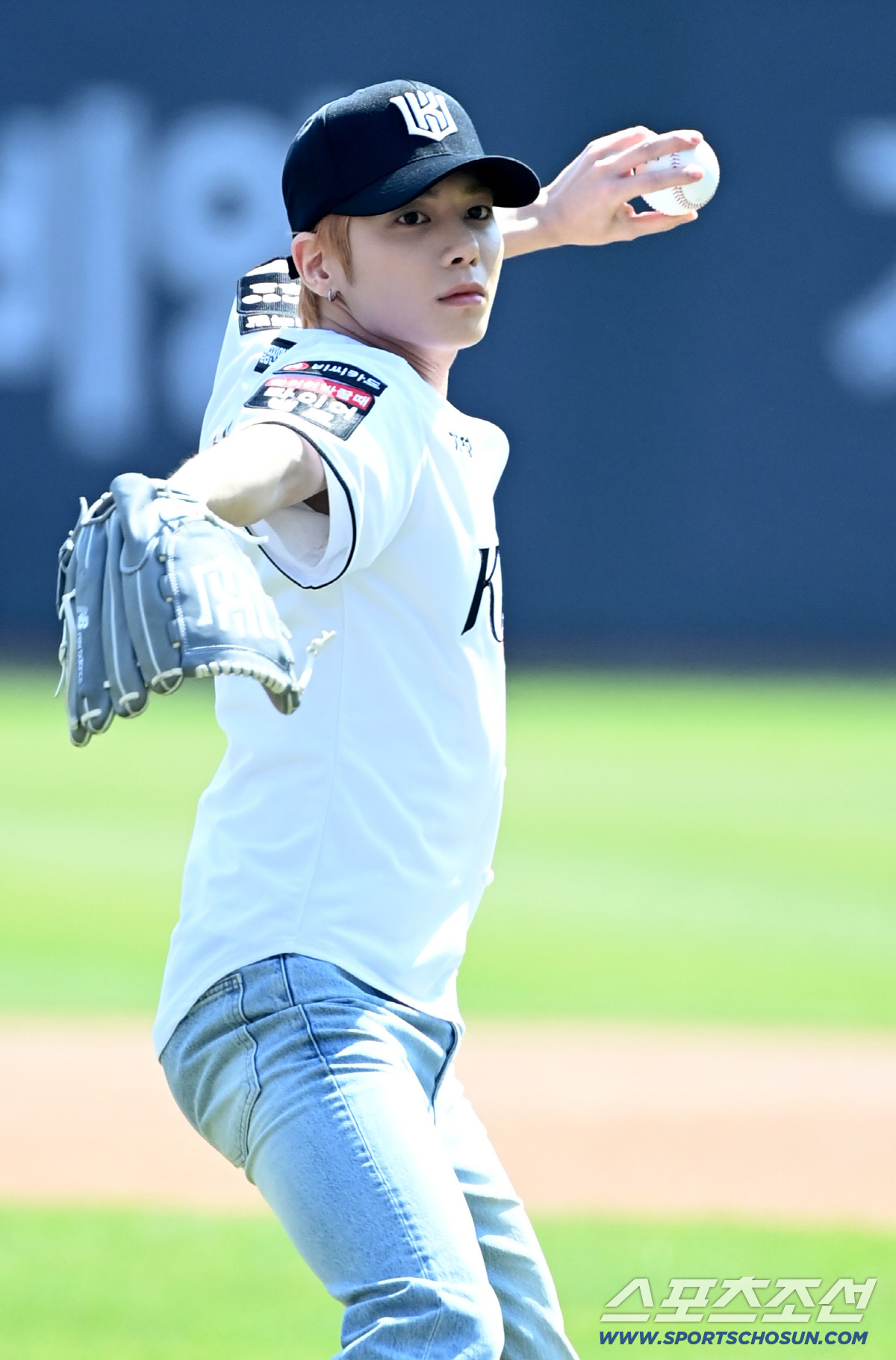 5일 수원KT위즈파크에서 열린 삼성과 KT의 경기. 투모로우바이투게더 태현이 시구를 하고 있다. 수원=허상욱 기자wook@sportschosun.com/2026.04.05/