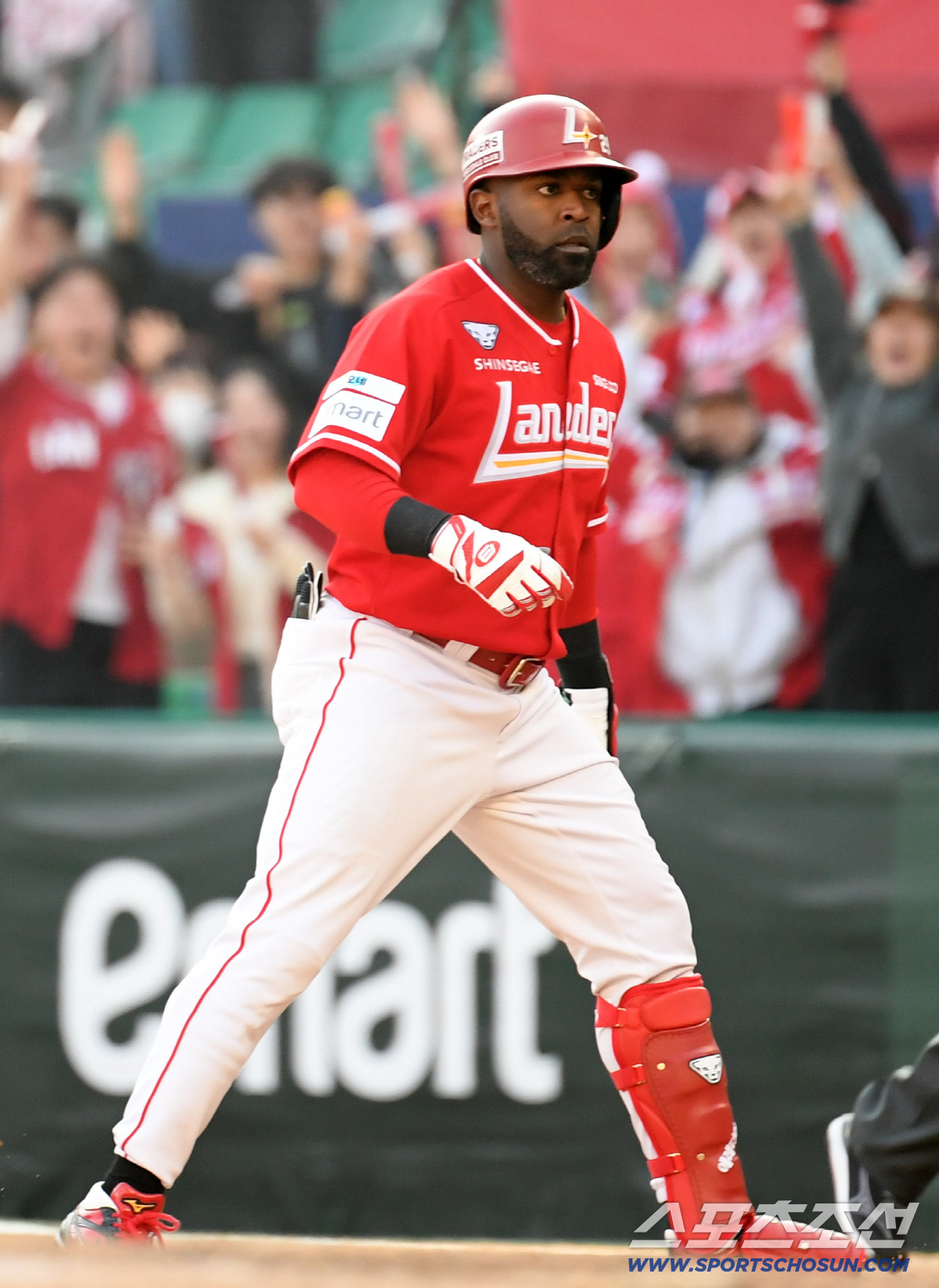 지난 4일 부산 사직구장에서 열린 SSG 랜더스와 롯데 자이언츠의 경기. SSG가 7대6으로 이겼고, 7회 결승타를 때려낸 SSG의 쿠바 출신 외국인 타자 기예르모 에레디아가 수훈 선수로 선정돼 중계 방송사인 MBC스포츠플러스 아나운서와 생중계되는 라이브 인터뷰를 했다.