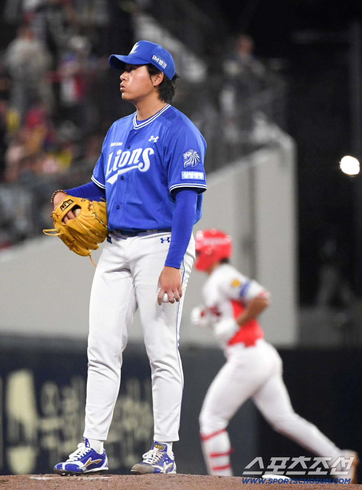 8일 광주 기아챔피언스필드에서 열린 KIA와 삼성의 경기. 3회말 1사 1루 KIA 김도영에게 투런포를 허용한 삼성 이승현이 자책하고 있다. 광주=박재만 기자 pjm@sportschosun.com/2026.04.08/