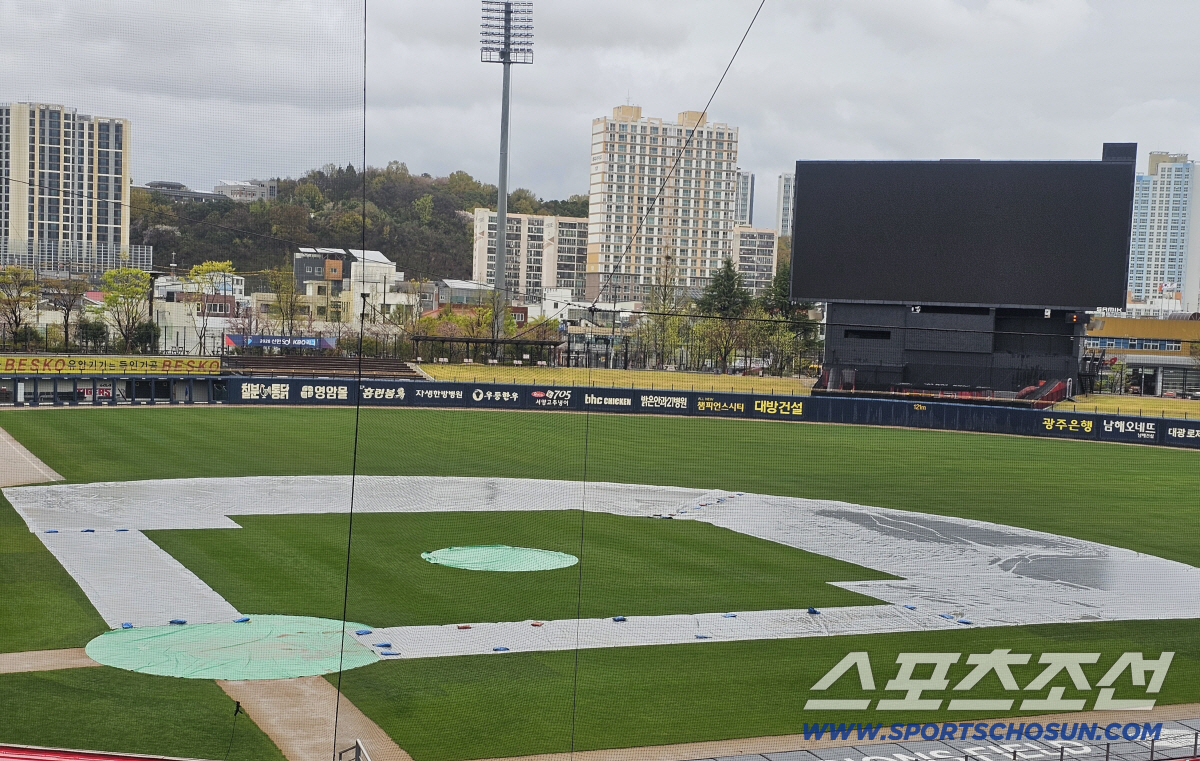 이미 그라운드의 내야 흙 부분을 전날부터 방수포로 덮었지만, 오전부터 누적된 강수량으로 인해 경기 진행이 쉽지 않은 상황이었다.