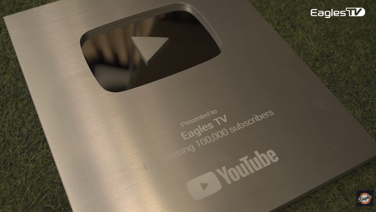 '이글스 TV'는 54만명의 구독자를 보유하며 10개 구단 중 가장 많은 인기를 끌고 있는 채널이다. '실버버튼'은 이 인기를 증명하는 상징적인 상품 중 하나다.