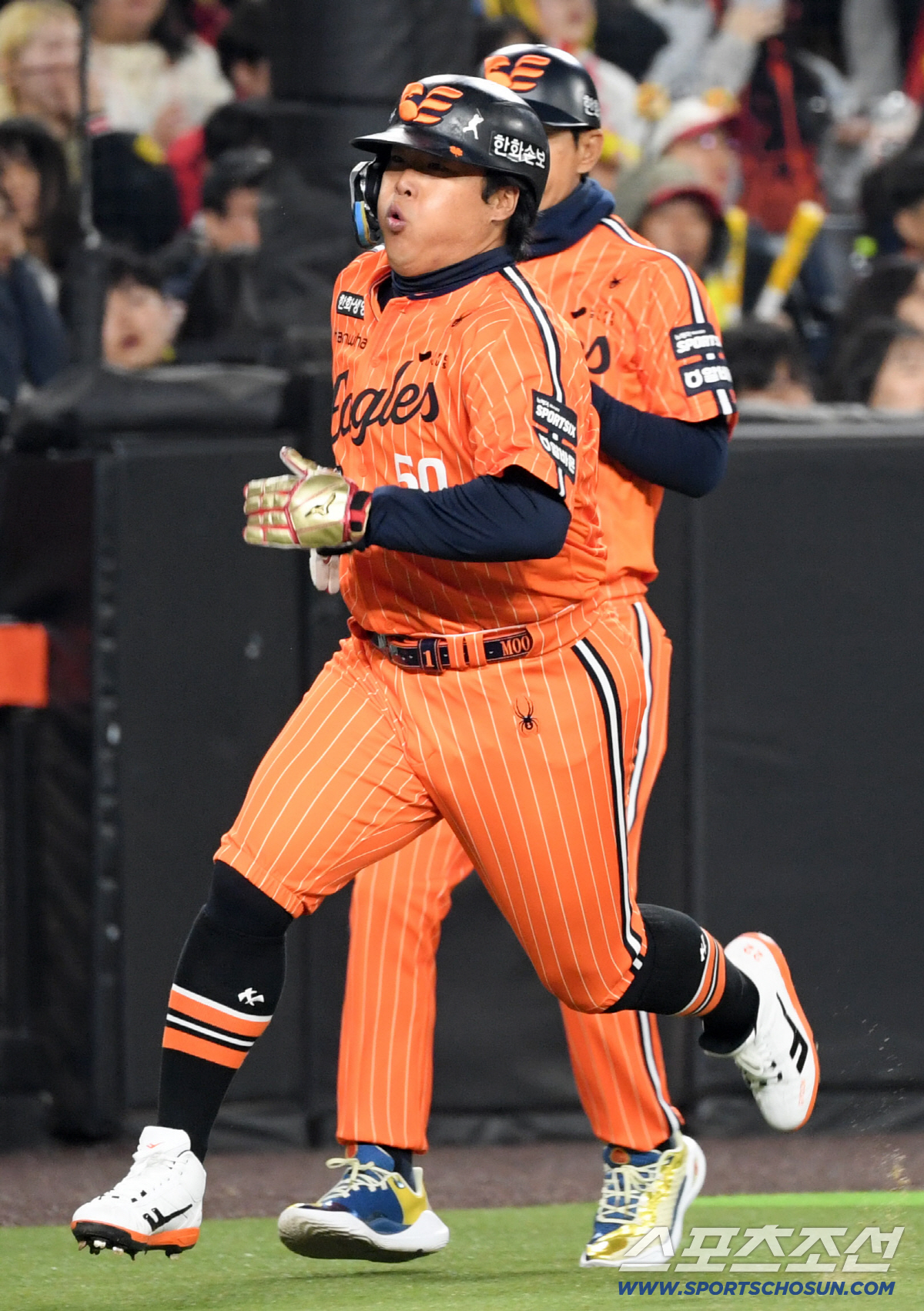 10일 대전 한화생명볼파크에서 열린 한화와 KIA의 경기. 7회말 1사 2루 한화 채은성 안타 때 강백호가 홈을 파고들고 있다. 대전=박재만 기자 pjm@sportschosun.com/2026.04.10/