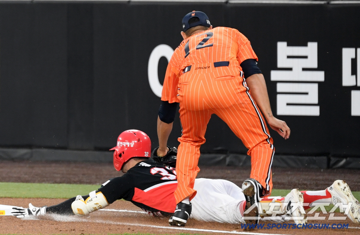 [대전=스포츠조선 박재만 기자] 가슴 철렁했던 순간이었다. 한화 벤치는 아웃카운트보다 자칫 에르난데스의 투지 넘치는 플레이가 자칫 부상으로 이어질까봐 걱정어린 시선으로 상황을 지켜봤다.