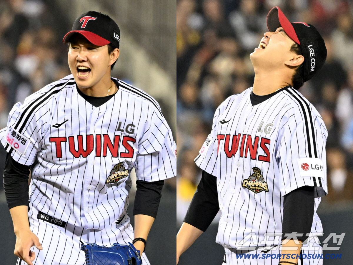 [잠실=스포츠조선 박재만 기자] 살 떨리는 순간에도 집중력은 흐트러지지 않았다. 9회초 1점 차 2사 1,3루. 가장 부담스러운 상황에서 LG 마무리 유영찬은 스트라이크 한복판에 슬라이더를 꽂아 넣으며 경기를 마무리지었다.