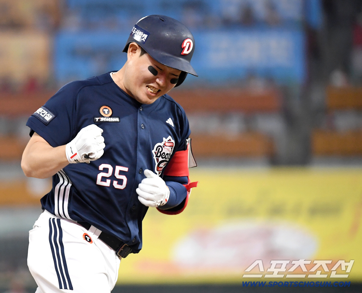 막혔던 혈이 뻥 뚫린 듯 천하의 양의지도 뒤늦게 터진 시즌 첫 홈런에 아이처럼 기뻐했다.