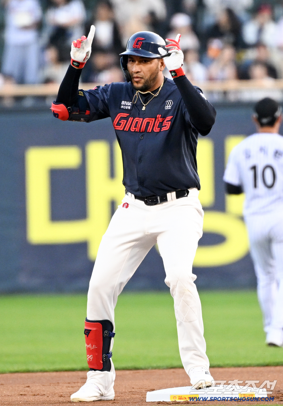 16일 잠실구장에서 열린 LG와 롯데의 경기. 1회초 롯데 레이예스가 안타를 날린 뒤 환호하고 있다. 잠실=박재만 기자 pjm@sportschosun.com/2026.04.16/